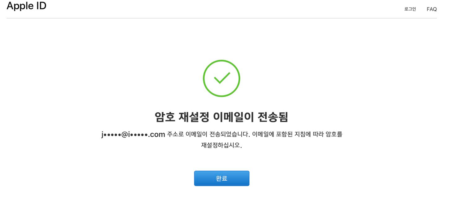 현재 로그인되어 있는 애플 계정에 등록된 이메일에 보안메일을 전송하여, 전송된 이메일의 링크를 통하여 비밀번호를 변경하는 방법