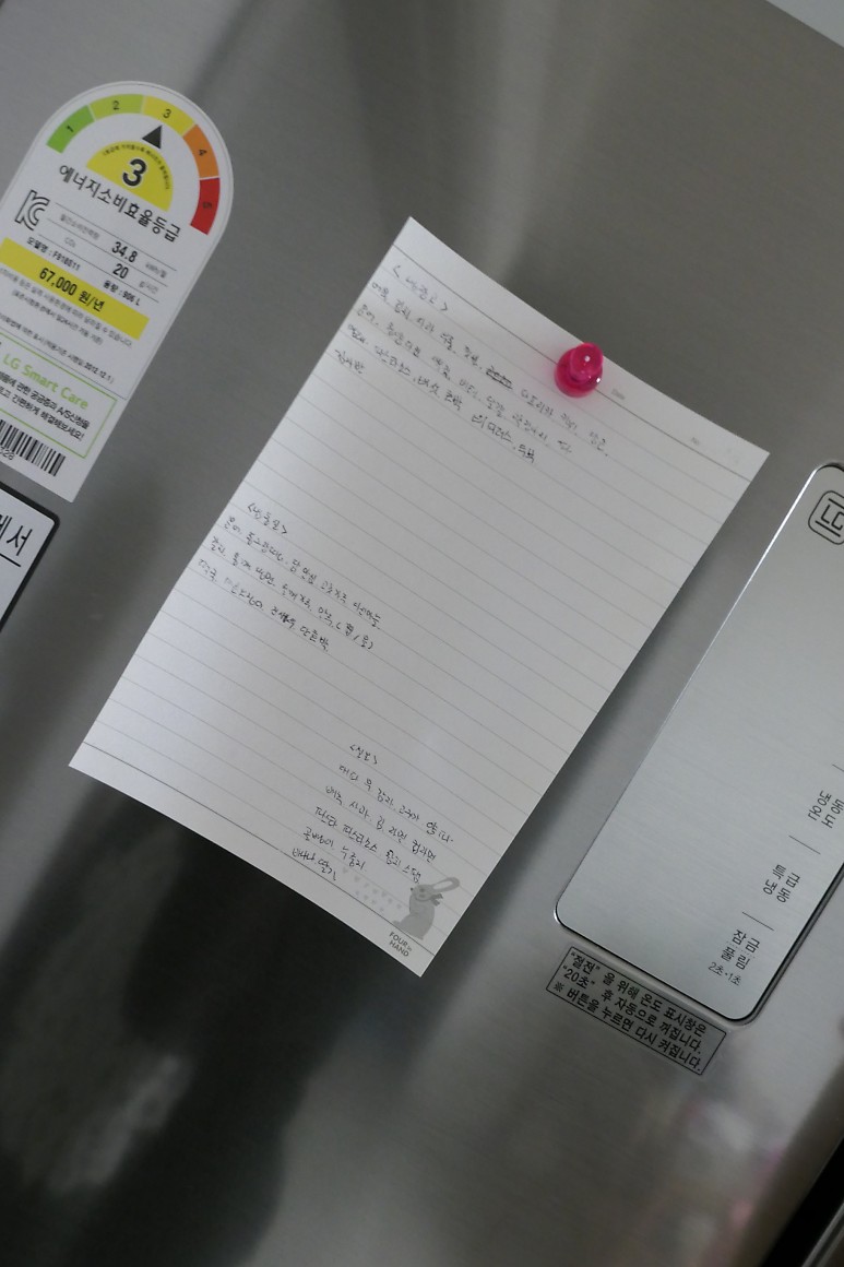 식비 줄이는 방안 중 한 가지로 냉장고 파먹기 예전에 도전했다기 책 보고 다시 도전하고 있을 수 있다!.성공담처럼 노트에 냉장고, 냉동실, 실온으로 분류해 지우고, 적고 있을 수 있다!.너무 황금 레시피에 따르지 않고, 재료가 다 없어도 되니 나만의 레시피로 요리하는 방안이에요.
