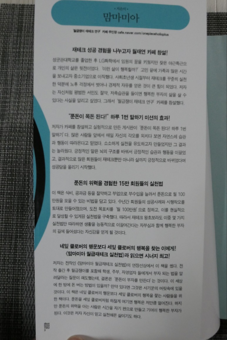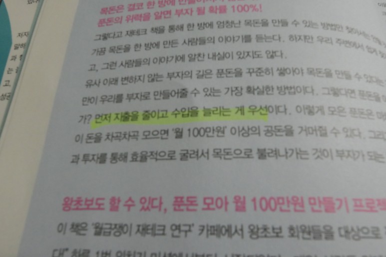 반갑지요. 오예스에요..월급쟁이 재테크 연구 네이버 카페에서 알맹이만 모아누구나 푼돈으로 월 100만 원 모으는 비법푼돈목돈 재테크 실천법 책으로 간만에 독서했어요..