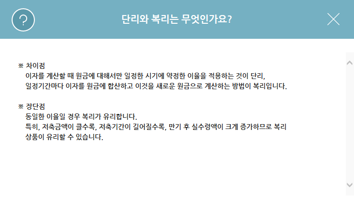 금리는 같아도 이자가 다르다.적금은 단리,예금은 복리가 기본이다.학고에서 단리와 복리에 대해서 언젠가 배웠을 어렴픗한 기억이 있다.말 그대로 단리는 이자는 이자일뿐 원금과는 별개로 논다 라고 상념한다면 된다.복리는 원금에 이자가 붙고 그 이자가 다시 원금과 더해져서 다시 이자를 낳고 그 이자는 다시 원금에 더해져 이자를 낳는다.그리해 복리가 조금이라도 더 이자가 많이 붙게 된다. 물론 원금 자체가 많지 않은 금전이라면 넓은 차이는 안나지만 원금이 커지면 그 차이 또한한 커진다.저금리 시대, 비록 많지 않은 금전 차이일지라도 단리 보다는 복리가 나쁘지않다.는 것은 당연한 사실이다.그런데 왜 사람들은 예금을 들지 않고 적금을 들까?"예금은 기본 금전이 정해진 경우가 있다.적금은 단돈 1만원이라도 매달 입금이 가능그러나,예금은 상품에 따라 최소 100만원이상 이러던지 1000만원 이상 이라던지 하는 단서가 붙기 장만이다.그리해 소소한 금전으로 목돈을 만드는 것은 예금보다는 적금이 선호되곤 했다.그런데 말 했듯, 상품마다 차이가 있다고 했듯 십중팔구의 상품은 100만원 단위면 예금이 가능하다.만일 10만원씩 1년동안 목돈을 만든다고 가정해보자.10만원씩 1년동안 금리 2.5% 적금을 가입했을 떄, 원금 120만원, 이자 15,250원이 발생120만원을 1년동안 금리 2.5% 예금으로 가입했을 때,원금 120만원, 이자 30,346원이 발생왜 이런 비교하기 어려운 자격으로 비교를 하는 것일까는 바로 풍차돌리기 적금 이야기 떄문이다.분명 예금이 적금보다 유리하다는 것을 알았다. 그런데 사람들은 풍차돌리기 적금을 한다. 뭔가 알면서 아는 것을 비껴간다는 점에서 이렇게 예금과 적금이야기를 비교하게 되었다.