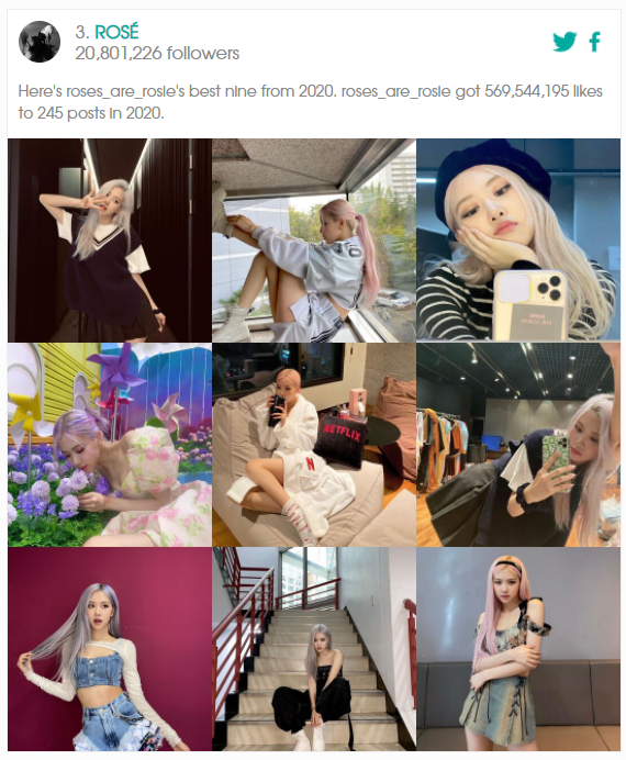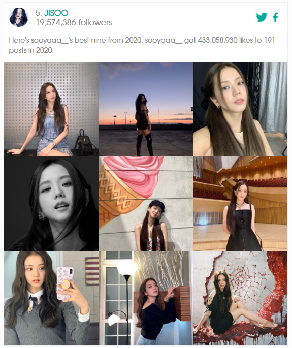 2020 가장 많은 좋아요 수는 블랭핑크 리사와 로제 지수