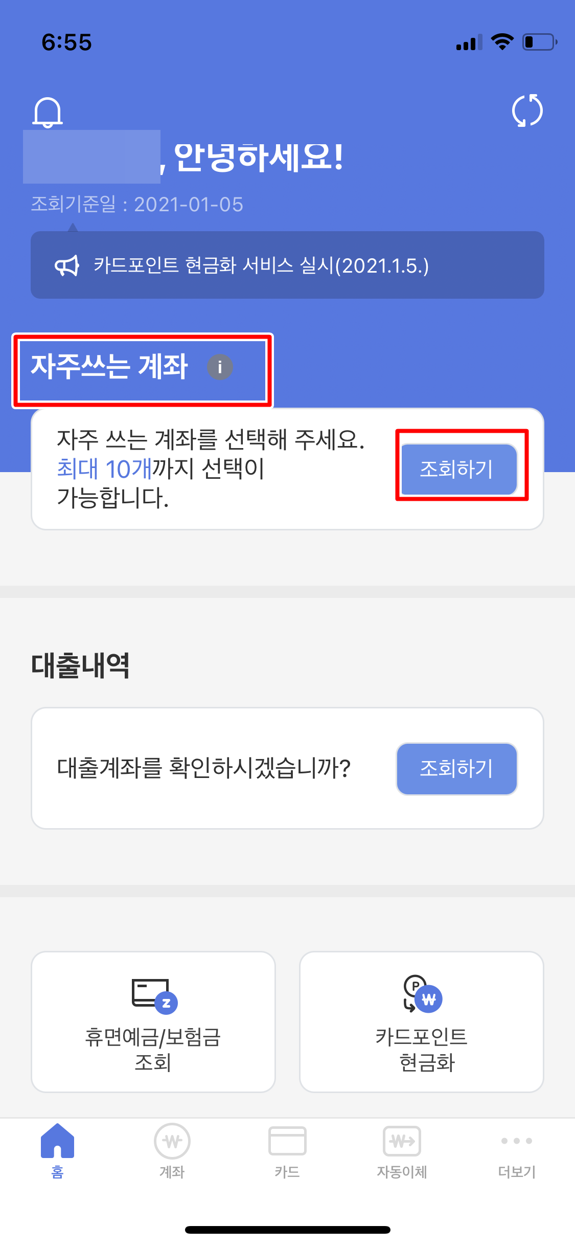 모바일 어플 '어카운드인포' 카드포인트 조회 확인하기