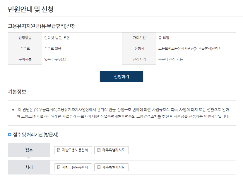 무급휴직지원대상과 지원금액 등을 확인하셨다면, 이제 신청 방법을 알아야겠죠? 위에 언급드렸다시피, 이 지원금 신청은 직원들이 하는 것이 아닌 사업장에서 신청을 처리하여야합니다.