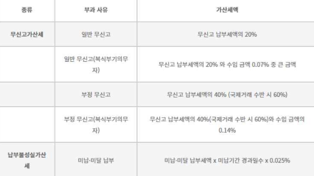 기한 내 신고라는 자진신고 제도를 통해서 20%의 가산세를 조금이라도 줄일 수 있습니다.